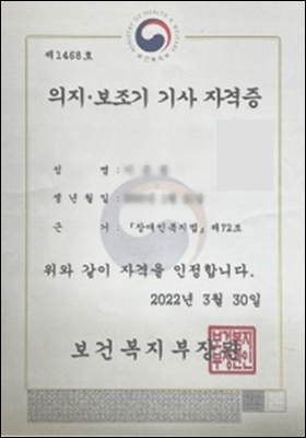 - 국시원 보건복지부가 인증하는 의지 보조기 국가 자격증 보유자
